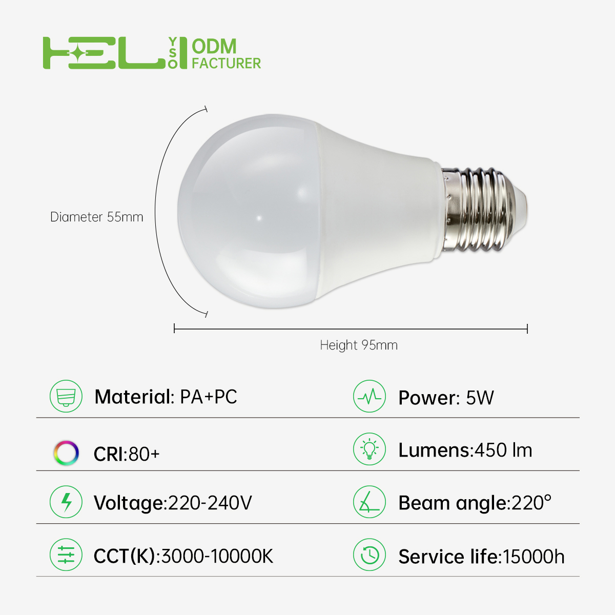 AP/ERPF/220°/230/LI-DOB/90/EMC,ROHS/0.5/塑包铝+PC罩/5/450/865/7LED/E27/HL-A55/55×95mm/F