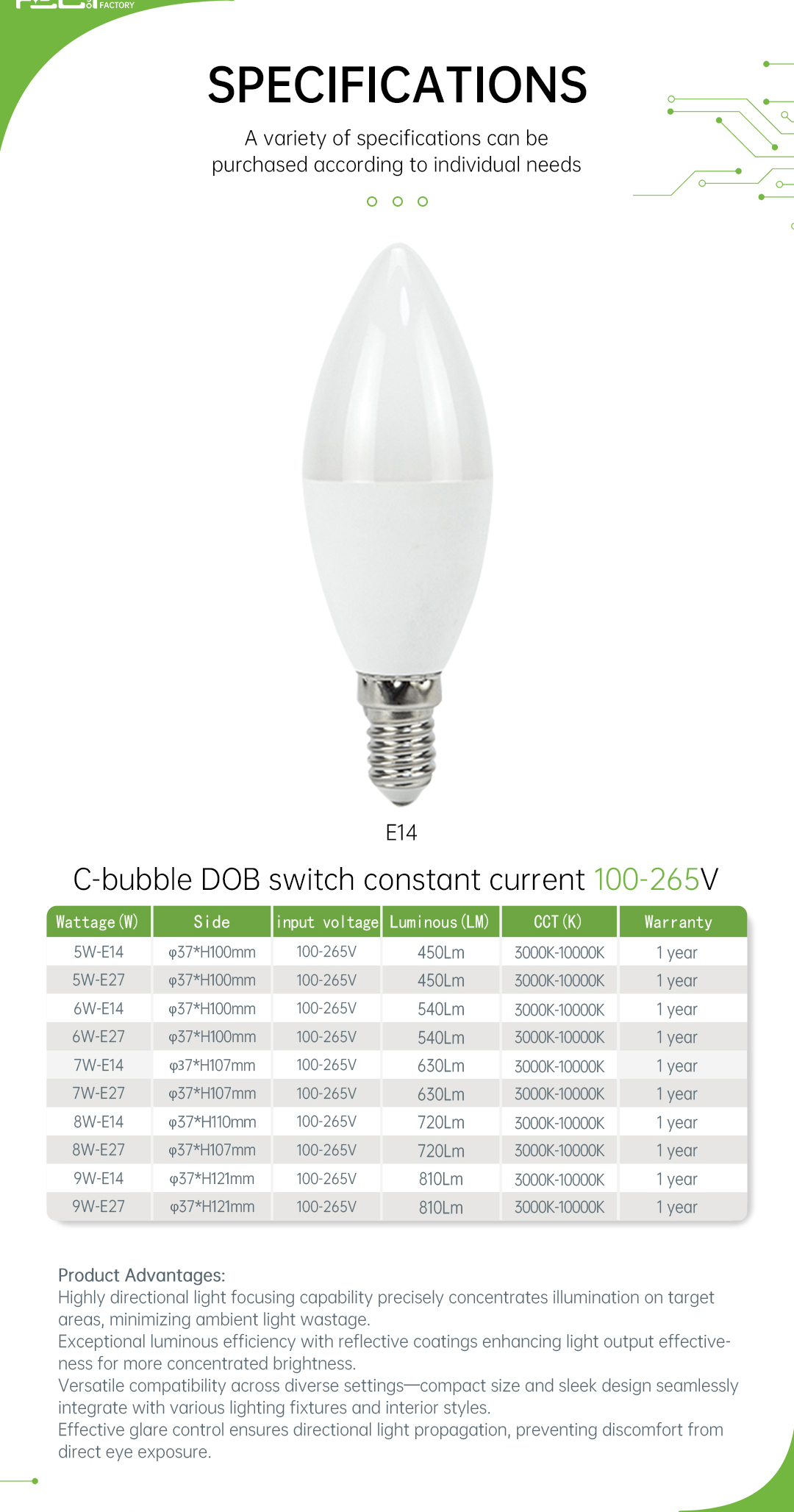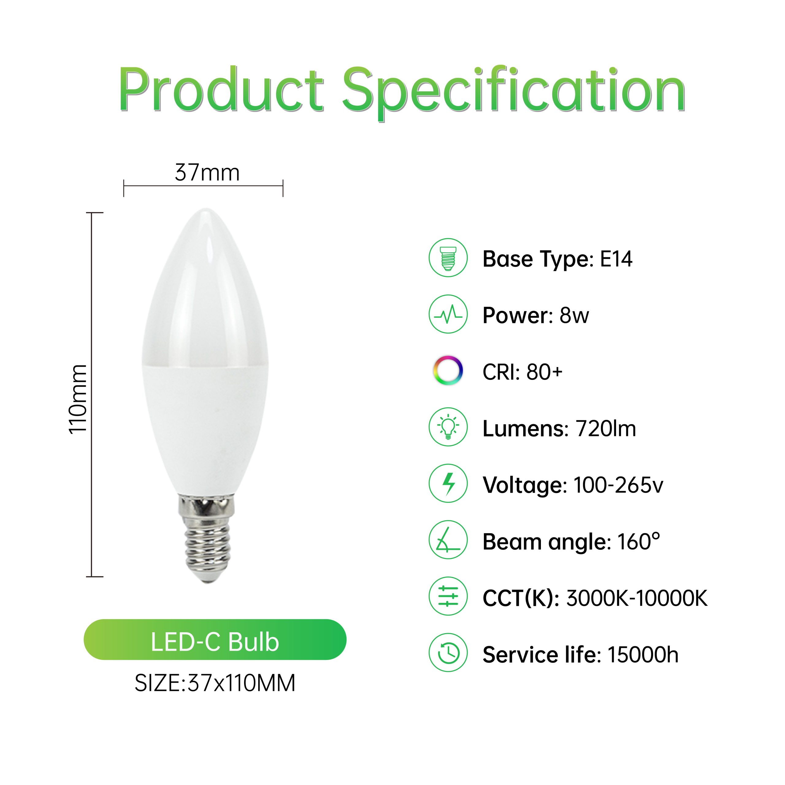 Standard universal E14 screw thread, easy to install, strong conductivity, safe to use.