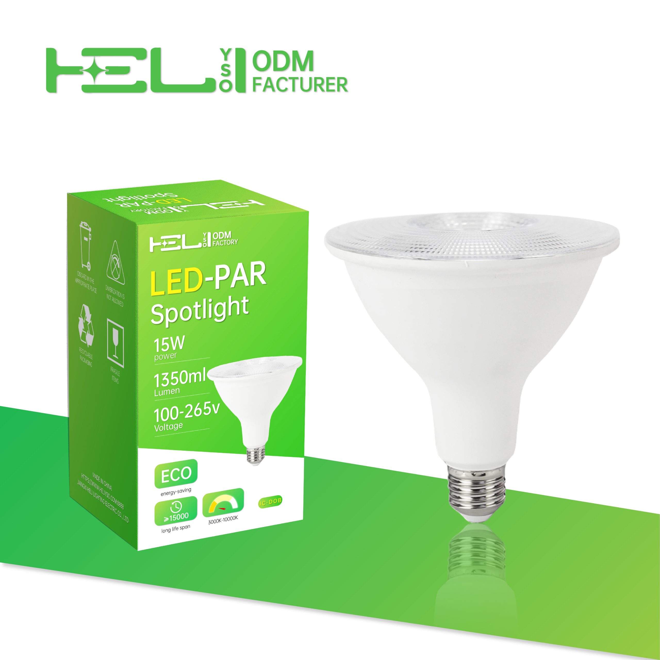 SD/PAR-长脖子款/100-265/IC-DOB/0.5/塑包铝+PC透镜/15/1350/860/18LED/E27/PAR38-φ120×H135mm