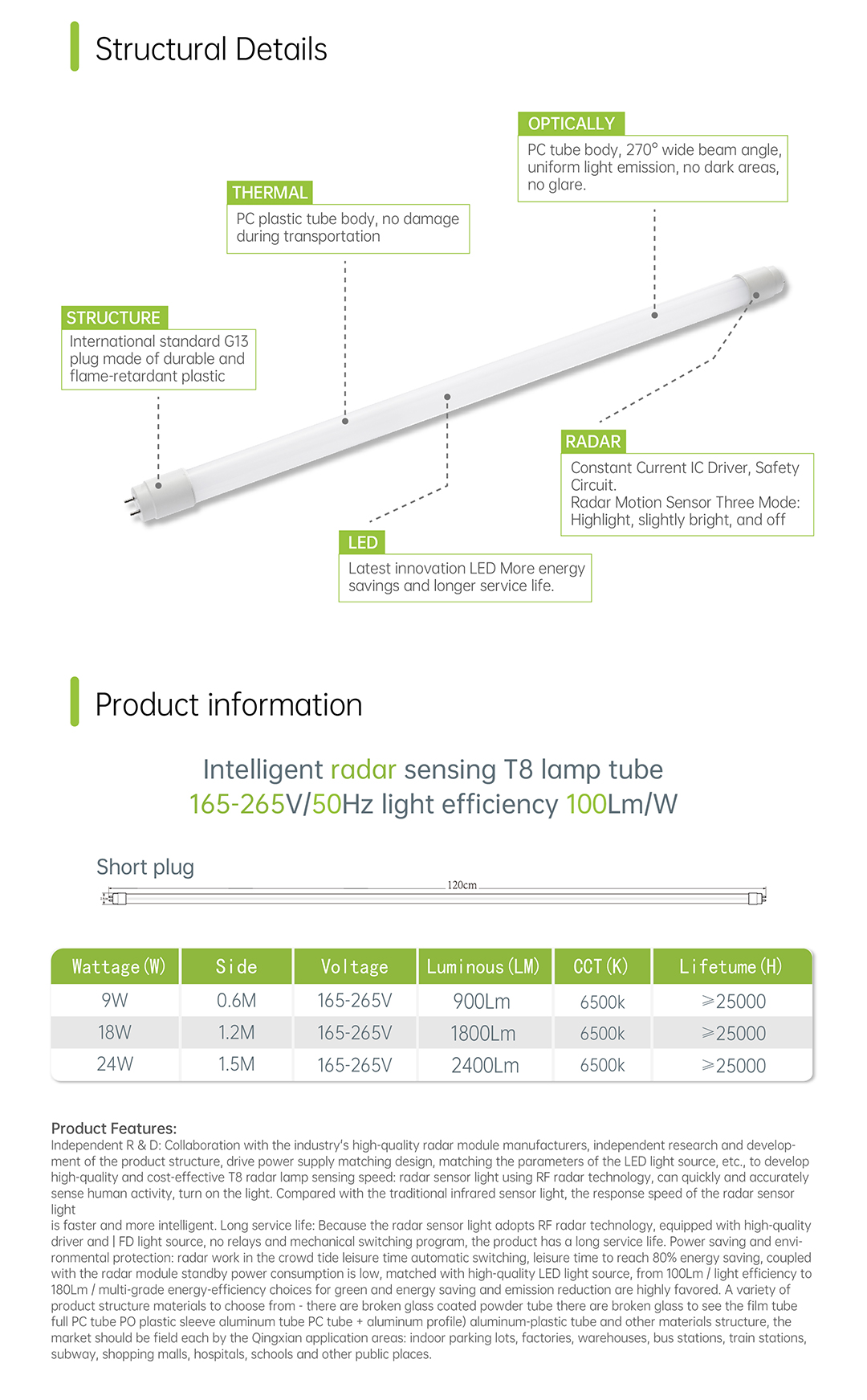 T8-PC管-电商/270°/165-265/IC-驱动/100/5.8G雷达感应(输出100%-30%PWM)/1000V/0.5/PC管-白色/24/2400/860/96LED/SA1.5/A款-1(带卡板槽)