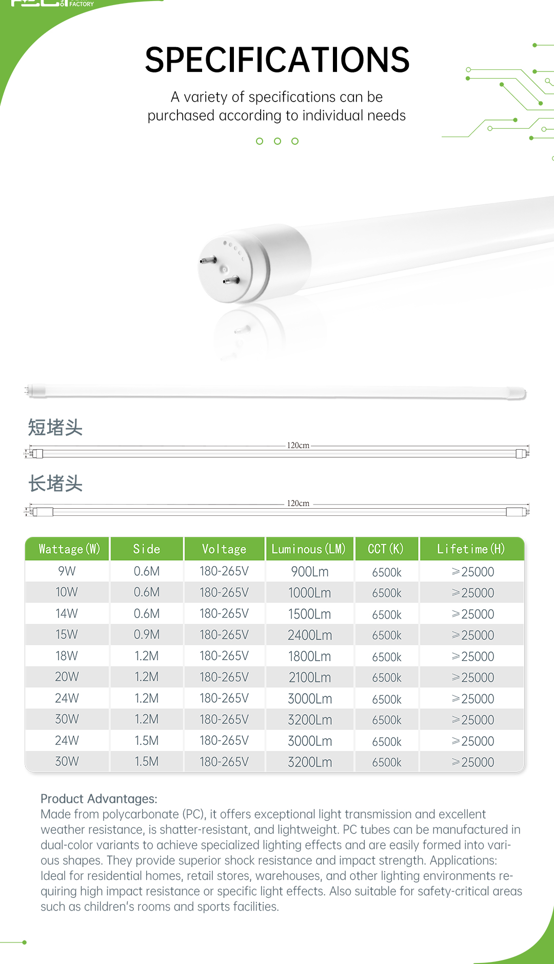 T8-PC管-电商/270°/180-265/IC-驱动/150/500V/0.5/PC管-白色/14/2100/860/60LED/SA0.6/B,C,D