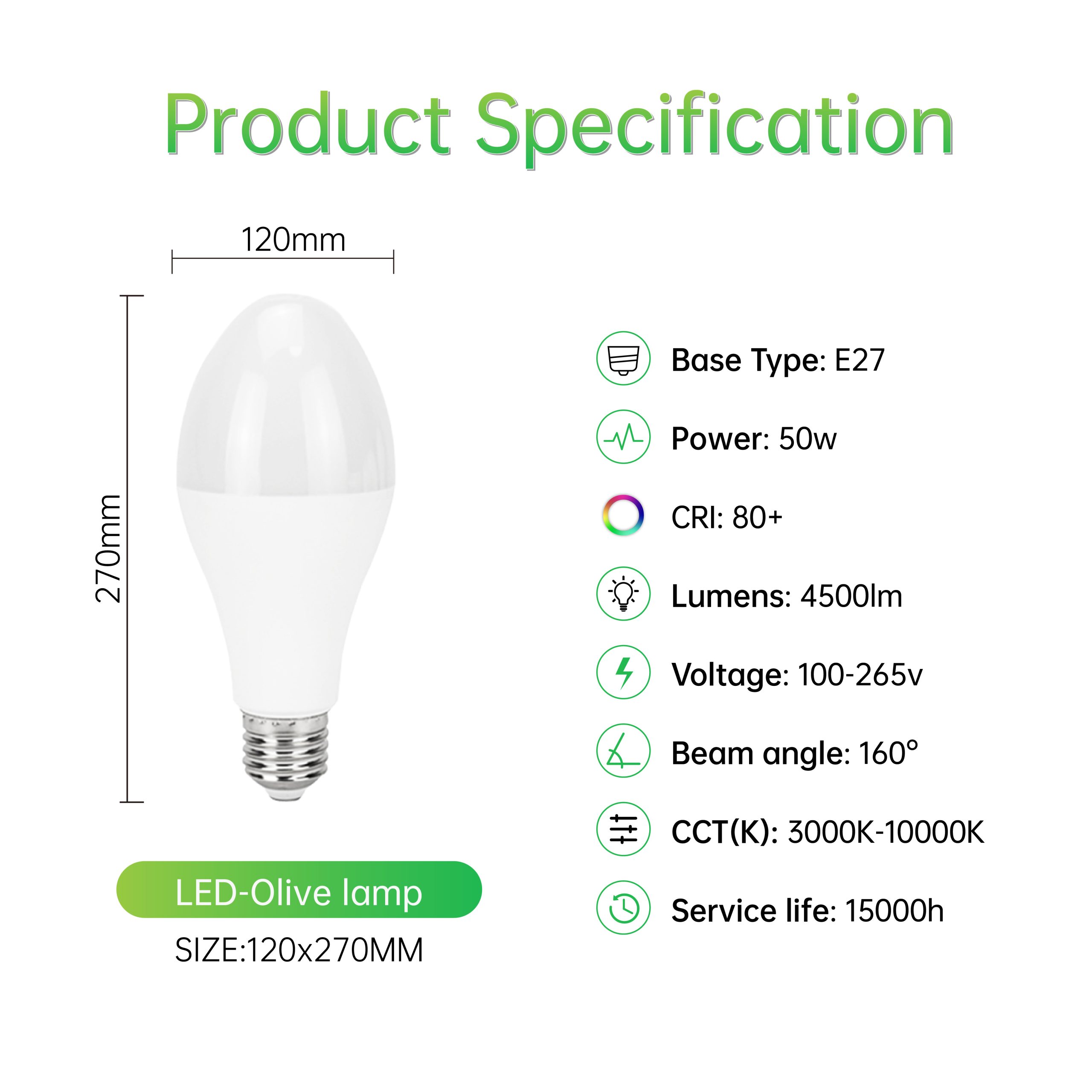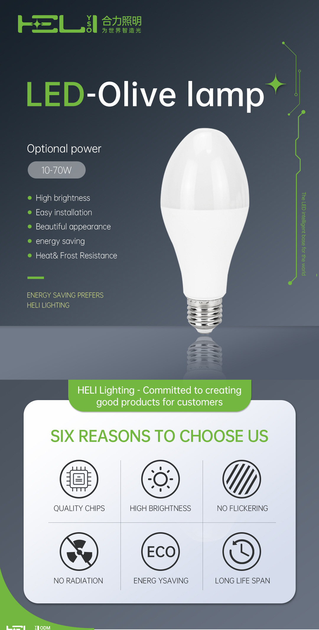 The energy-saving efficiency of the olive lamp exceeds 50%, reducing energy consumption by half while maintaining the same brightness.