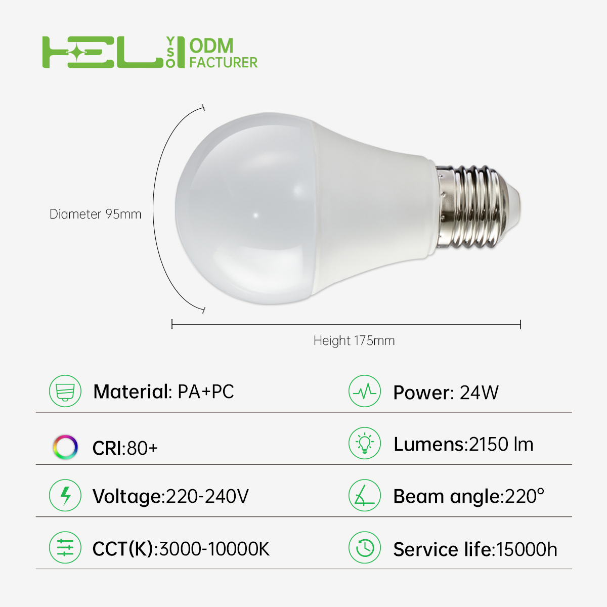 AP/ERPF/220°/230/LI-DOB/90/EMC,ROHS/0.5/塑包铝+PC罩/24/2150/865/30LED/E27/HL-A95/95×175mm/F