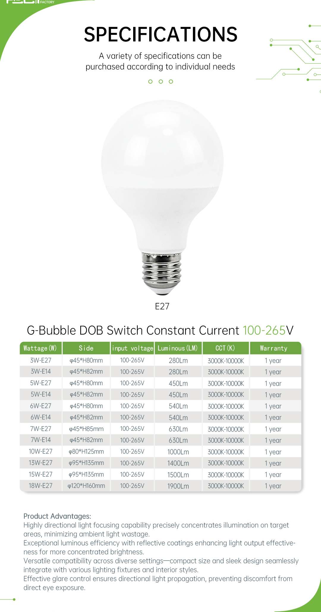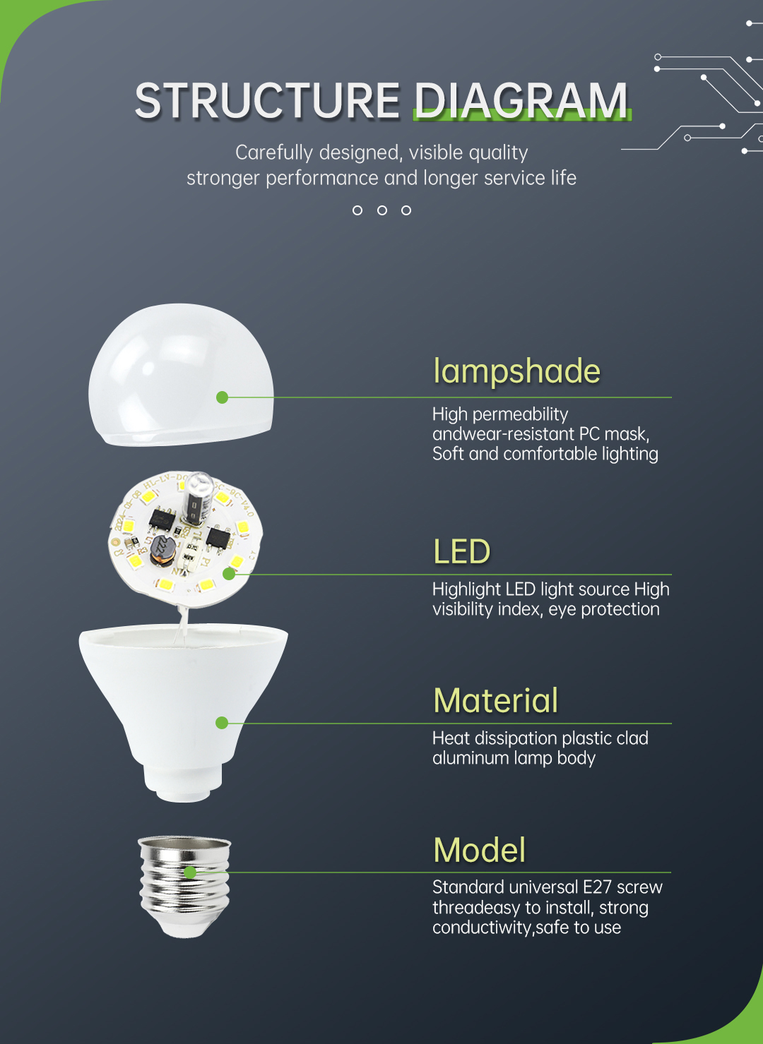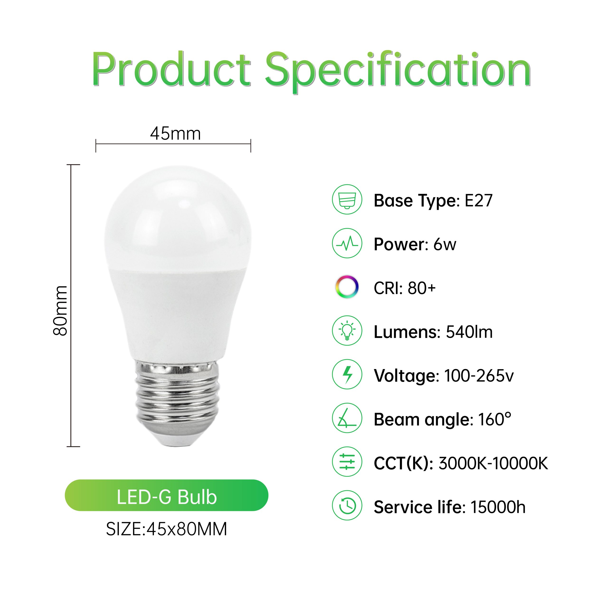 Standard universal E27 screw thread, easy to install, strong conductivity, safe to use.
