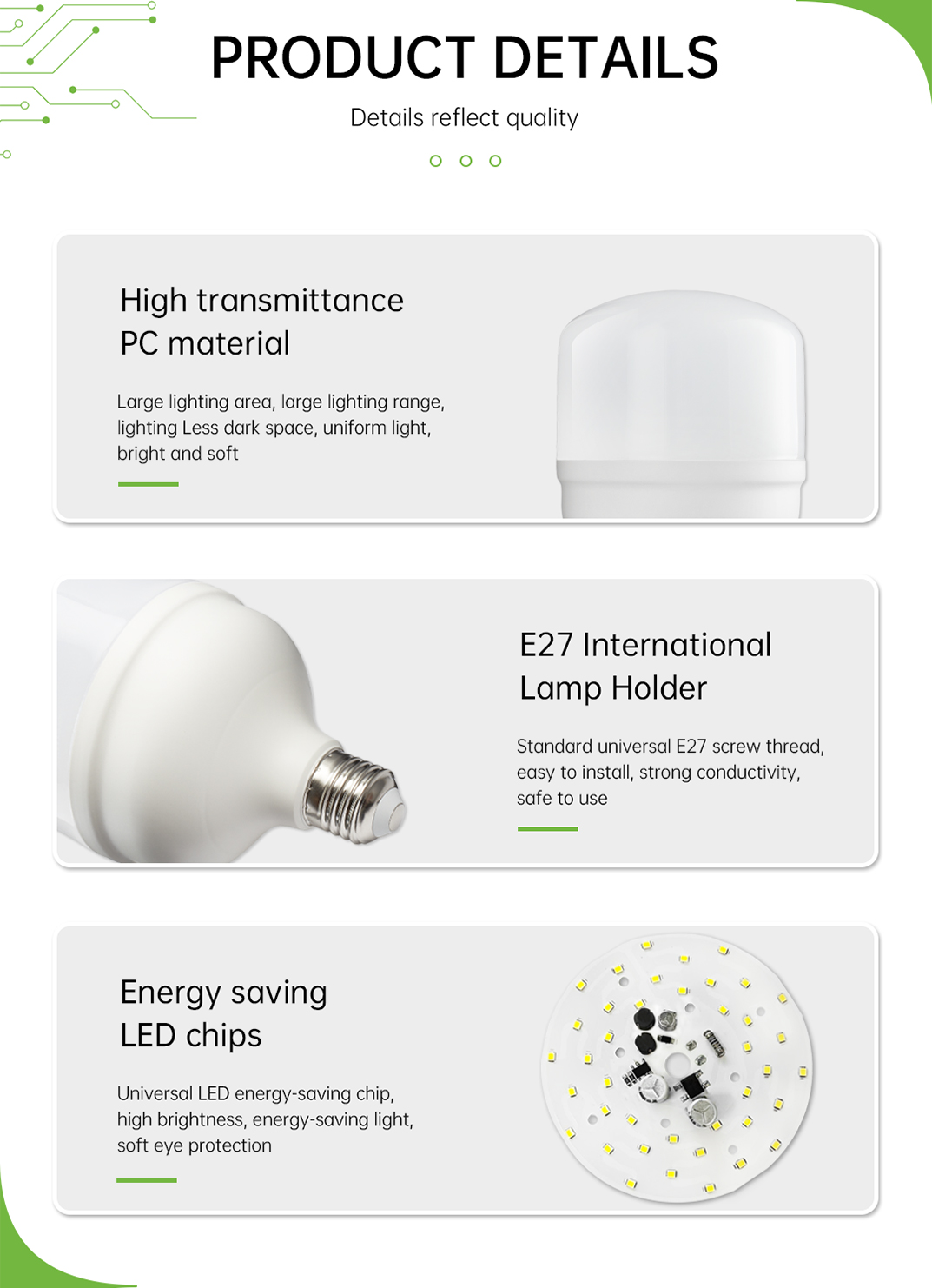 Standard universal E27 screw thread, easy to install, strong conductivity, safe to use.