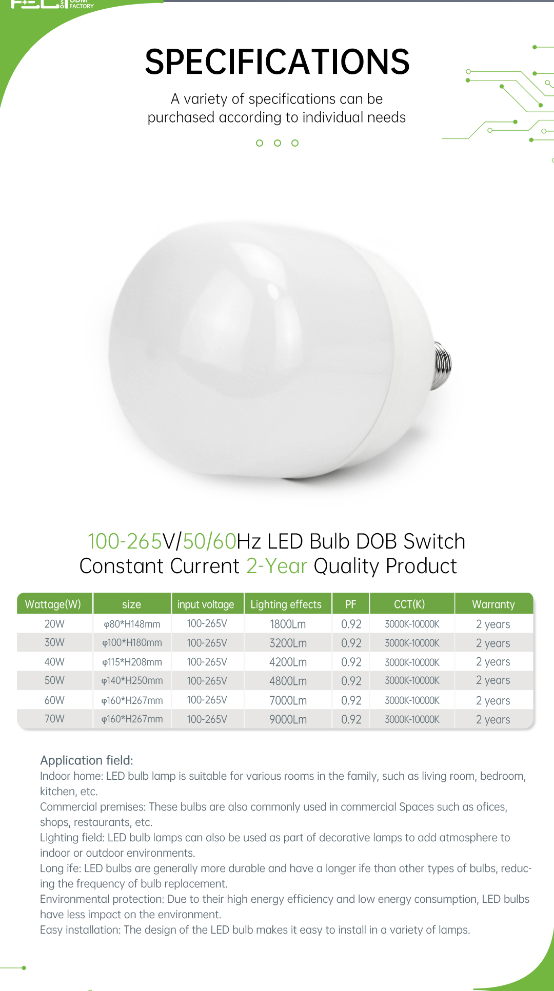 Standard universal E27 screw thread, easy to install, strong conductivity, safe to use